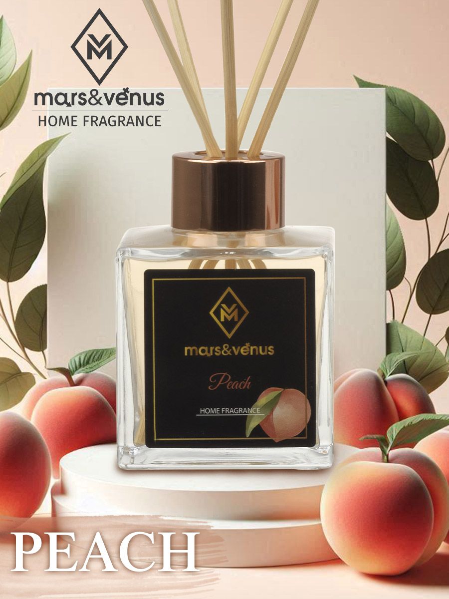 Предлагаем вам интерьерный ароматический диффузор с ротанговыми палочками Mars&Venus Peach («Персик»). Ощутите летнее тепло и бархатную сладость с диффузором Peach от Mars&Venus. Откройте для себя гармонию и спокойствие, наполненных солнечным ароматом персикового сада. Этот аромат яркий, но при этом ненавязчивый. В нём гармонично сочетаются спелые фруктовые ноты, утончённые цветочные аккорды и элегантные древесные оттенки.