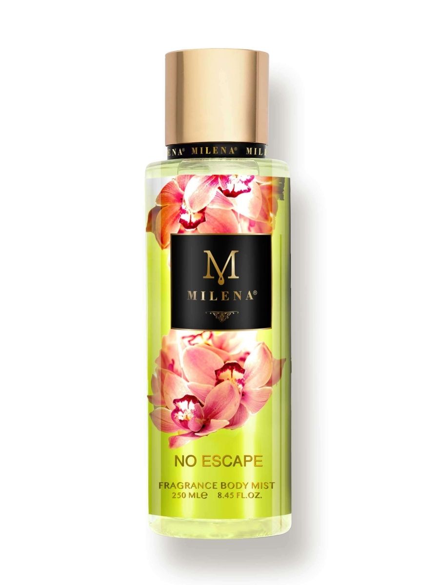 Milena Parfum представляет коллекцию освежающих, увлажняющих и тонизирующих спреев, которые смягчают кожу благодаря содержанию питательных растительных масел и дарят телу легкую ароматную вуаль. Мист для тела Milena «No Escape» насыщенный, яркий и теплый, ассоциирующийся с заходом солнца, вечерней тишиной. Этот аромат в сочетании с фруктовыми и цветочными нотами дарит радость движения и большой заряд энергии. Со временем аромат не теряет своей яркости. Средство не оставляет следов на одежде, никакой липкости и тяжелого шлейфа. В состав миста входят компоненты, которые бережно ухаживают за кожей, оказывая успокаивающее и смягчающее действие.