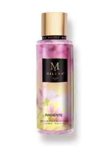 Milena Parfum представляет коллекцию освежающих, увлажняющих и тонизирующих спреев, которые смягчают кожу благодаря содержанию питательных растительных масел и дарят телу легкую ароматную вуаль. Мист для тела Milena «Radiante» подарит невероятное удовольствие любительницам свежих и одновременно сладких фруктово-цветочных композиций. Аромат яркий, но не навязчивый, подойдет для использования как летом, так и зимой. Средство не оставляет следов на одежде, никакой липкости и тяжелого шлейфа. В состав миста входят компоненты, которые бережно ухаживают за кожей, оказывая успокаивающее и смягчающее действие.